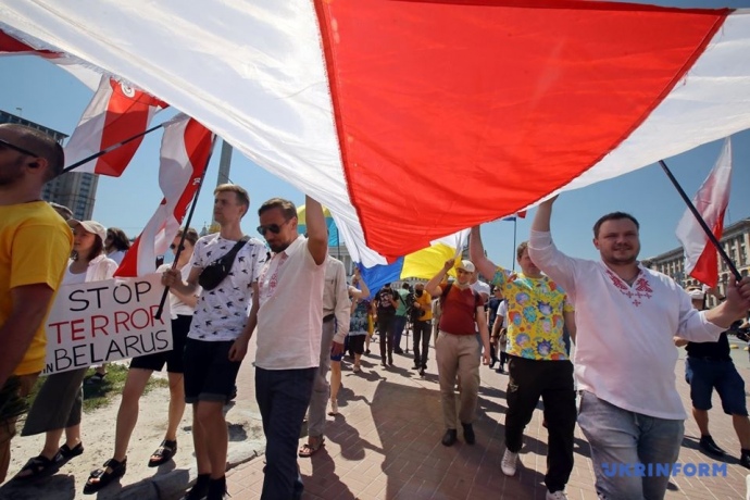 У центрі Києва пройшов марш солідарності з Білоруссю.