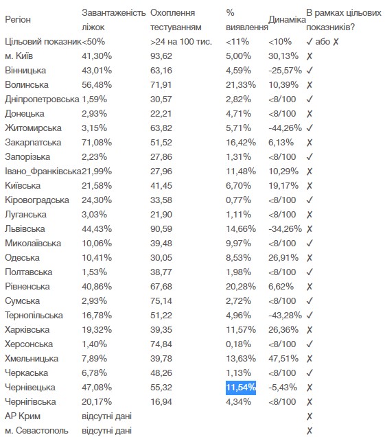 Деталі: Згідно із методологією міністерства, якщо регіон хоча б за одним із показників не відповідає нормі, то він потрапляє до списку таких, де не можна послаблювати карантин. У випадку із Чернівецькою областю перевищено відсоток виявлення нових випадків захворювання, який не повинен бути більшим за 10%.