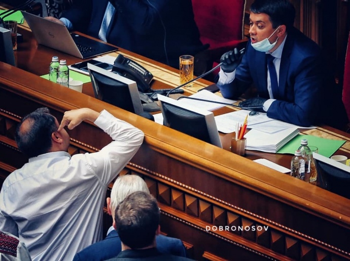 Пізніше Разумков перейшов на підвищений тон та російську мову. Глава ВР також зазначив, що якщо нардепи щось поламають, то потім доведеться заплатити за це майно.