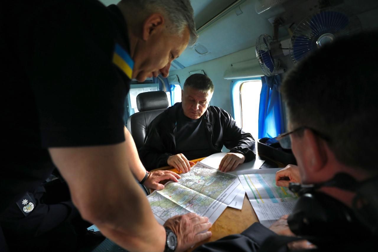 Пряма мова Авакова: "Зранку із секретарем РНБО, головами ДСНС, НПУ працюємо на місці лісових пожеж поблизу Сєвєродонецька в оперативному штабі, здійснили повітряний моніторинг районів займання.