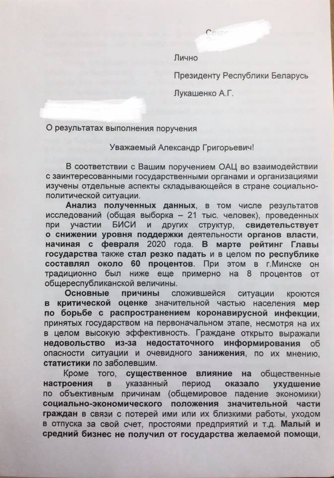 Деталі: 9 липня Лукашенко провів зустріч з колективами найбільших ЗМІ Білорусі, більшість з яких державні, на якій на прохання присутніх показали "документ, що реально описує ситуацію в Білорусі. У тому варіанті, в якому його отримує поки тільки Перший", - зазначив Кривошеєв.