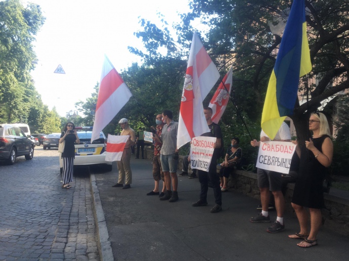 Біля посольства Білорусі влаштували акцію на підтримку опозиції