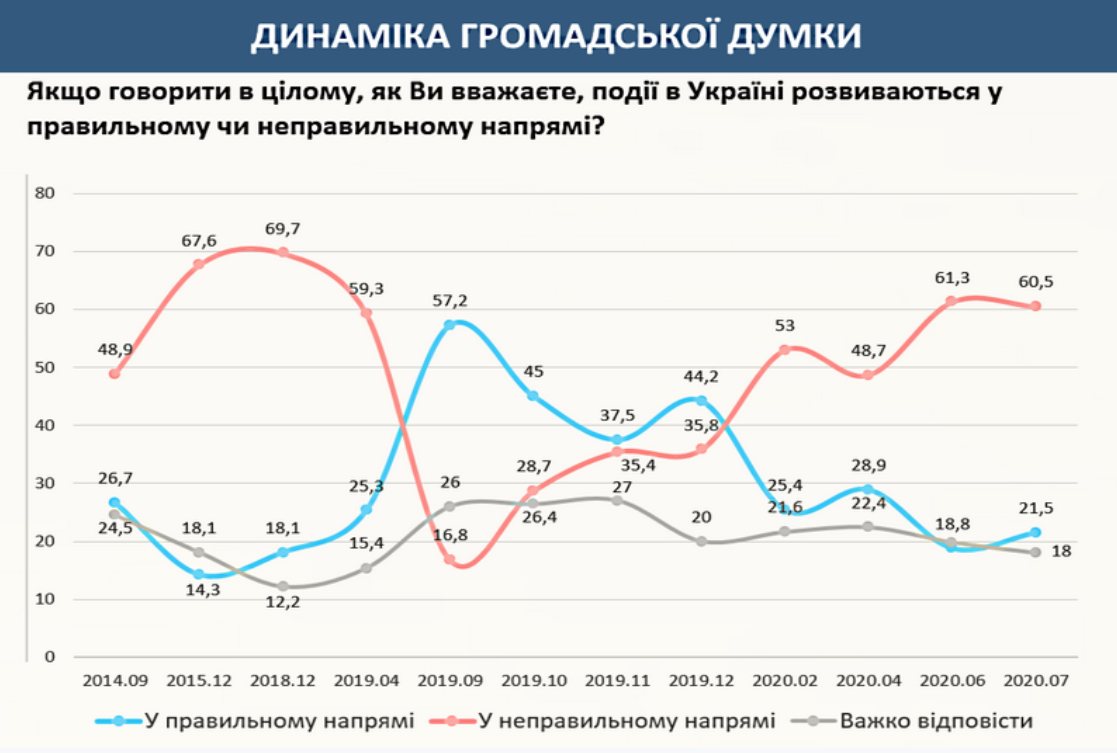 Під час опитування 60,5% українців заявили, що події в країні розвиваються в неправильному напрямі.