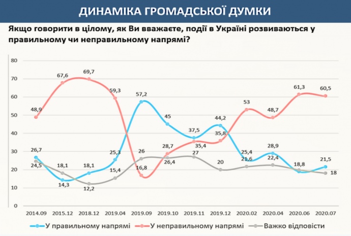 Деталі: Водночас 21,5% респондентів вважають, що події в Україні розвиваються у правильному напрямі.