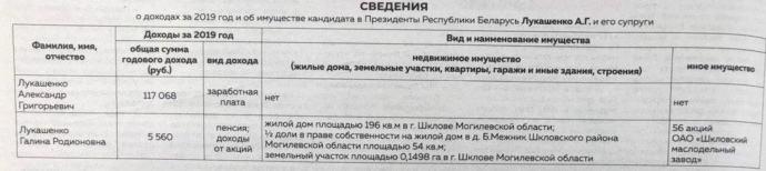 Деталі: Лукашенко лише задекларував 117 068 рублів зарплати за минулий рік (трохи менше 50 тисяч доларів).