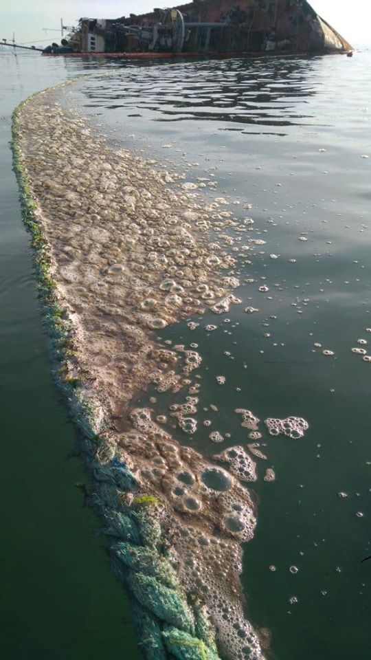 - Однак вдень 22 листопада аналізи показали перевищення допустимої концентрації нафтопродуктів у воді в 53 рази, а 23 листопада Держекоінспекція Кримсько-Чорноморського округу прозвітувала, що вміст нафтопродуктів у воді на місці аварії перевищує гранично допустиму концентрацію в 157 разів.