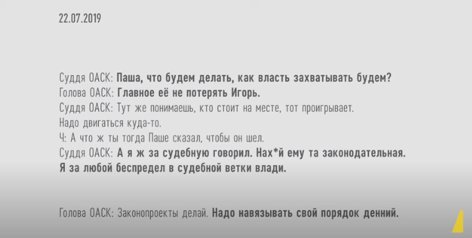 В НАБУ повідомили, що в такий спосіб голова ОАСК хотів продемонструвати свою владу та можливості суду, залякати та помститися ексвисокопосадовцям.