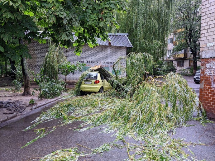 У вівторок у Києві пройшла потужна злива із градом, в наслідок чого в різних частинах міста повалилися дерева.