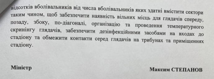 Джерело: лист очільника МОЗ Максима Степанова УАФ, який є в розпорядженні УП, очільник УАФ Андрій Павелко в Facebook