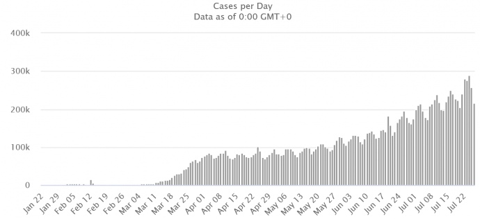 Нагадаємо: Добу тому у світі налічувалося 16 мільйонів 189 тисяч випадків захворювання на коронавірус. Денний приріст складав майже 258 тисяч осіб.