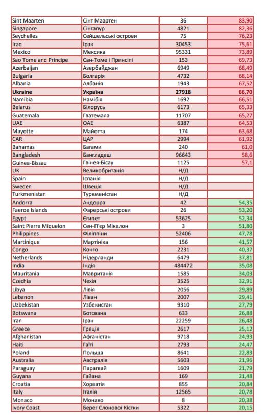 За даними міністерства охорони здоров’я, до списку країн "червоної зони" потрапити понад 60 країн, враховуючи Україну.