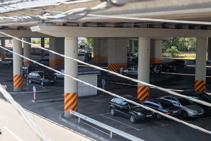 Пряма мова: "Перший з шести перехоплюючих паркінгів – біля станції метро Видубичі – вже працює в режимі дослідної експлуатації, поки що на безоплатній основі. Він розрахований на 193 місця. На сьогодні в середньому щодня водії залишають на паркінгу 120-140 автівок".