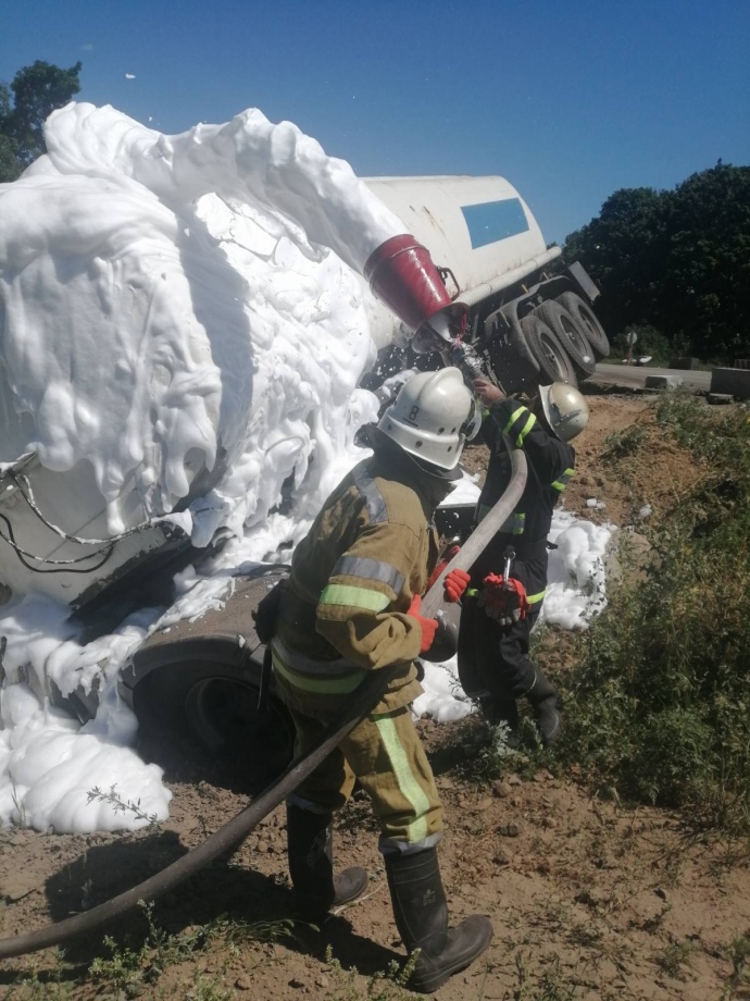 Деталі: За попередньою інформацією рятувальників в цистерні знаходилась близько 20 тон нафти.