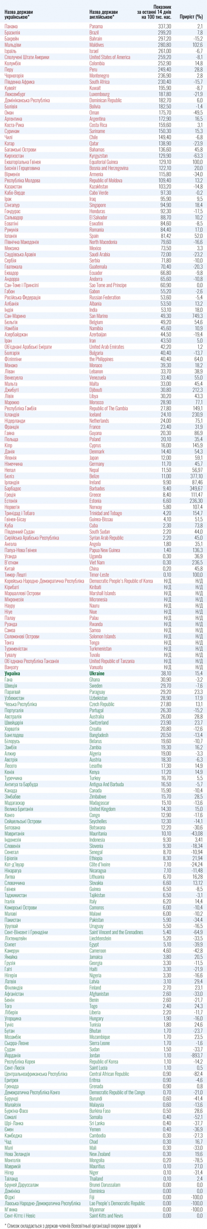 "Червоні" країни очолили Панама, Бразилія, Бахрейн, Мальдіви, Ізраїль та США.
