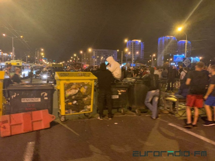 Протестувальники, у свою чергу, почали зводити барикади із підручних засобів. Такі барикади ОМОН вже знищив біля універсаму "Рига", звідки ж розігнав мітингарів.