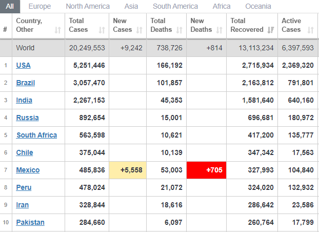 Деталі: За останніми даними, загалом було зареєстровано 20 млн 249 тисяч випадків захворювання, із них летальних – 738 тисяч.