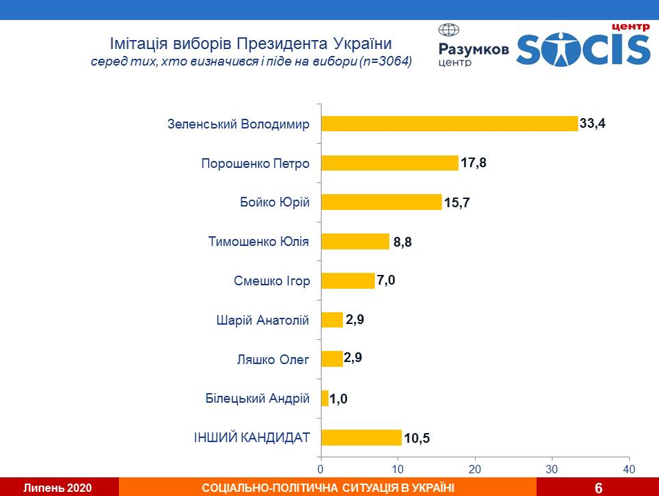Свіжі рейтинги: у Зеленського вдвічі більший за Порошенка