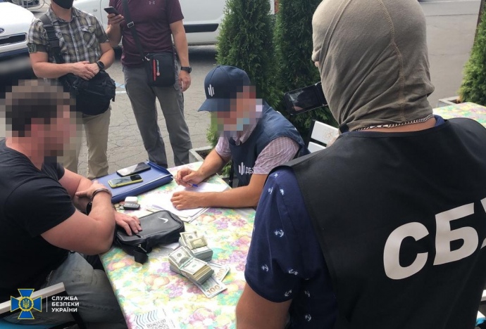 Деталі: Співробітники СБУ задокументували передачу посередникам першої частини хабара у розмірі 10 тисяч доларів та затримали їх поблизу ресторану в центрі Києва після отримання решти суми.