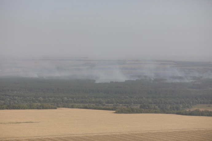 В Харківській області – осередки пожежі в населених пунктах Гороб’ївка та Грянинівка ліквідовано, продовжується гасіння осередку лісової пожежі на площі близько 100 га. Звечора там горіло 500 га, з них 100 га - верхова пожежа.