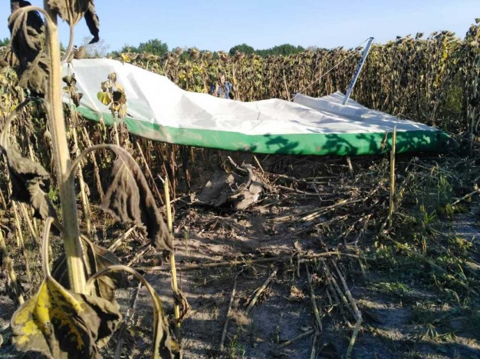 Дослівно: "За попередньою інформацією, дельтаплан здійснював обробку поля з соняшником, пілот не впорався з керуванням, внаслідок чого дельтаплан упав і чоловік загинув".
