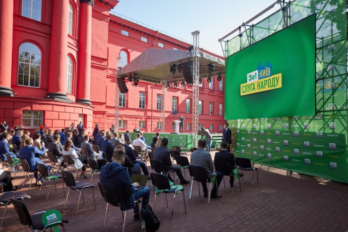 Джерело: Зеленський у неділю під час презентації Стратегії розвитку Києва від партії "Слуга народу" у внутрішньому дворі університету імені Тараса Шевченка, передає "Інтерфакс-Україна"