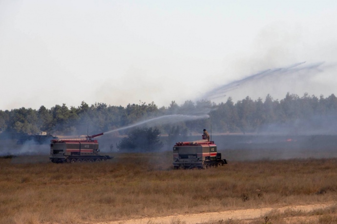 Під час стрільб загорівся полігон: до гасіння залучили літаки, танки та вертоліт