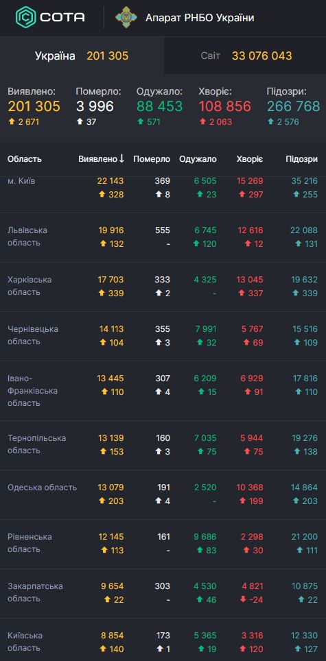 В Україні 2 671 новий хворий на COVID, кількість померлих підбирається до 4 тисяч