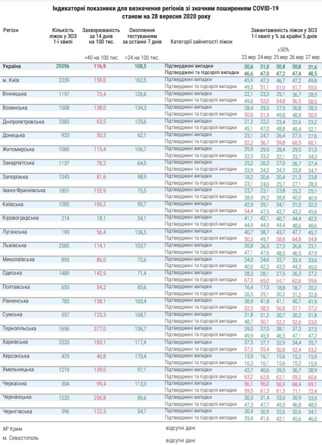 У 23 регіонах і столиці перевищений показник захворюваності за 14 днів на 100 тисяч населення.