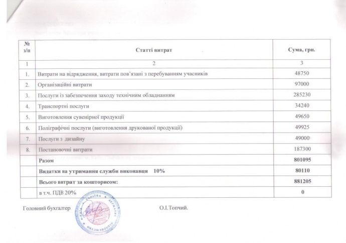 Таким чином, загалом урочисті заходи обійшлись місцевому та державному бюджету в 1 601 632 гривні.
