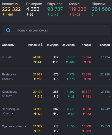 За минулу добу, 2 жовтня, в Україні виявлено рекордний 4661 випадок коронавірусу. Померло від хвороби у п'ятницю 92 особи – найбільше за весь час.