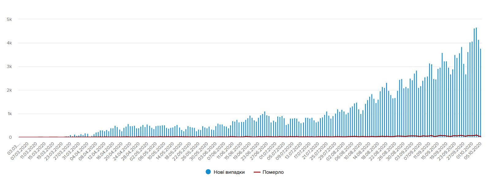 Цьому передувало: Лише у кінці вересня Україна перетнула позначку в 4 тисячі випадків COVID-19 за добу: 29 вересня коронавірусну хворобу діагностували у 4 027 осіб.