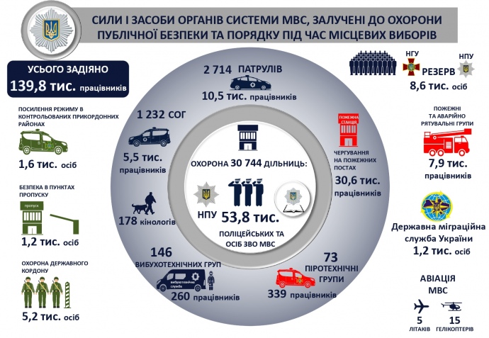 Пряма мова Ярового: "Виходячи з розрахунків для забезпечення публічної безпеки під час місцевих виборів буде залучено майже 140 тисяч правоохоронців. Передбачається залучення авіаційних підрозділів системи МВС для оперативного реагування на зміну обстановки".