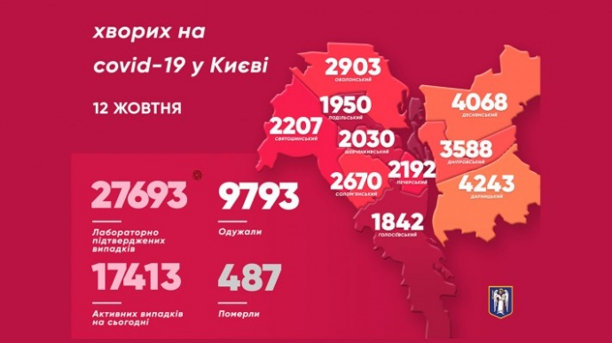 Підтверджених випадків захворювання на COVID-19 на сьогодні в столиці вже 27 693. Всього коронавірус подолали 9 793 мешканця Києва. Всього від коронавірусу в Києві померли 487 людей.