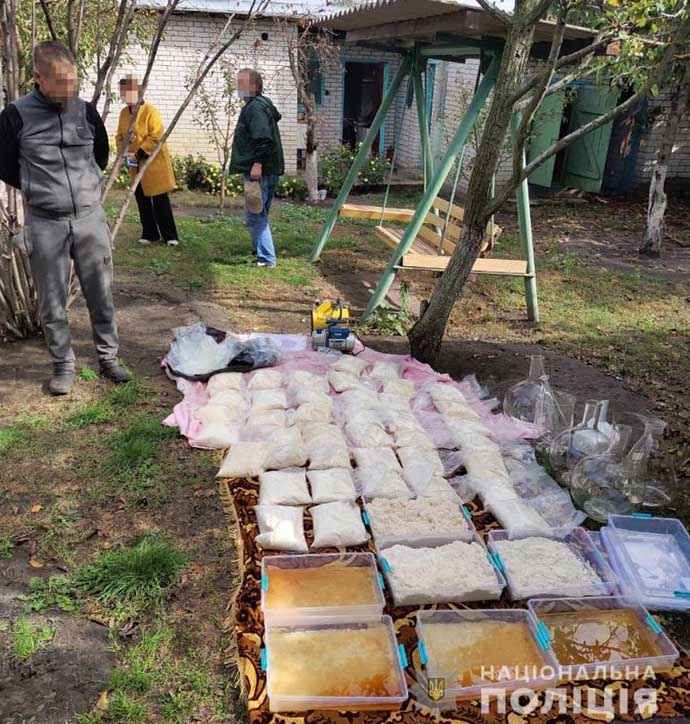 Також поліцейські вилучили більше 50 кг PVP, близько 10 кг амфетаміну, понад 500 літрів прекурсорів та обладнання для виготовлення наркотиків, 5 одиниць вогнепальної зброї, понад 150 набоїв до них та документи.