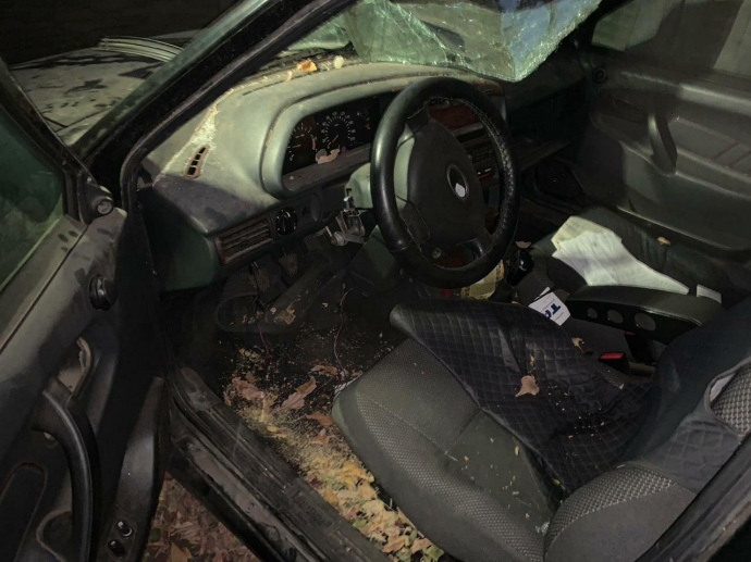 Пряма мова Денісової: "В автомобілі розбите лобове скло, порізана гума всіх чотирьох коліс, перерізані дроти всередині салону та викрадені державні автомобільні номери та збиті бокові дзеркала.