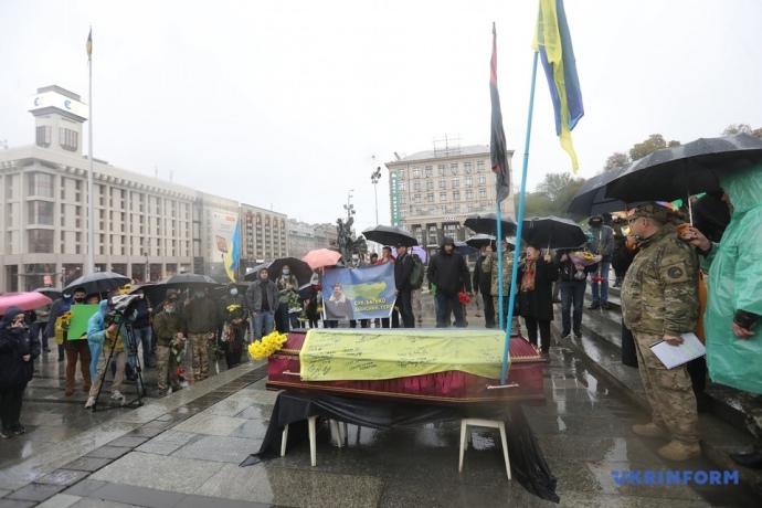 У Києві на Майдані Незалежності в суботу попрощалися з Миколою Микитенком, ветераном АТО, який у ніч на 11 жовтня підпалив себе на Майдані.