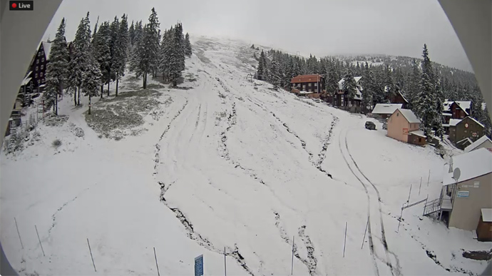 У Карпатах іде сніг, на гірськолижному курорті Драгобрат намело близько 5-7см, на горі Піп Іван температура повітря уже мінусова.