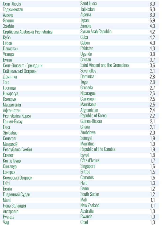 До країн "зеленої зони" віднесені Албанія, Кіпр, Білорусь, Єгипет, Туреччина та ін.