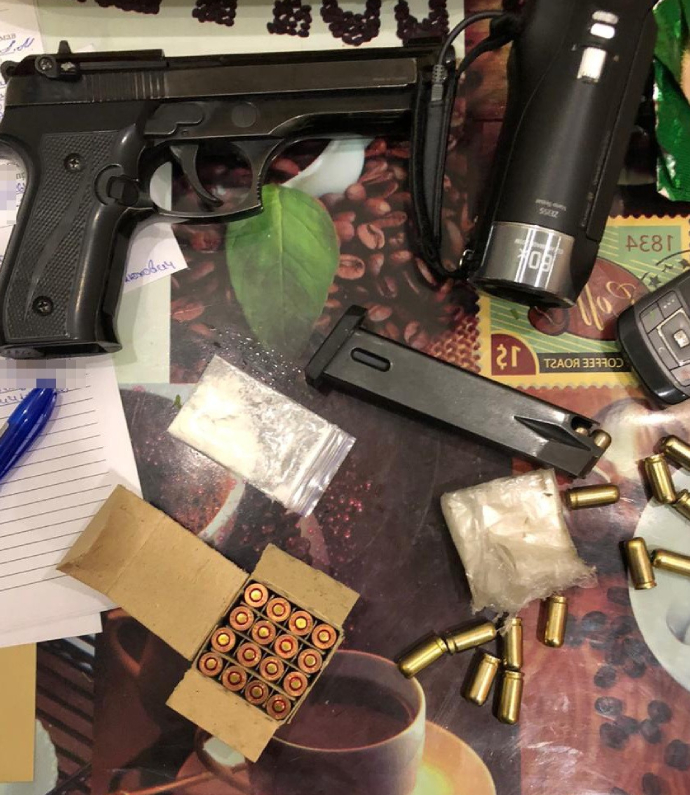 Під час обшуків, проведених за адресами проживання основних фігурантів, правоохоронці вилучили ручний гранатомет, гранату РГО із запалом до неї, 7 саморобних вибухових пристроїв, пістолет "Шмайсер" калібру 9 мм, пристрої для відстрілу гумових набоїв, 70 набоїв різного калібру, розфасовані наркотичні засоби, сім-картки кількох мобільних операторів, телефони, комп’ютерну техніку.