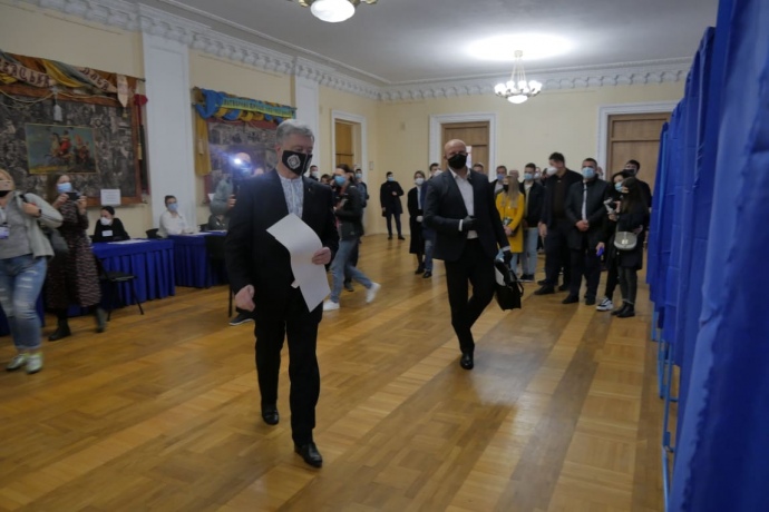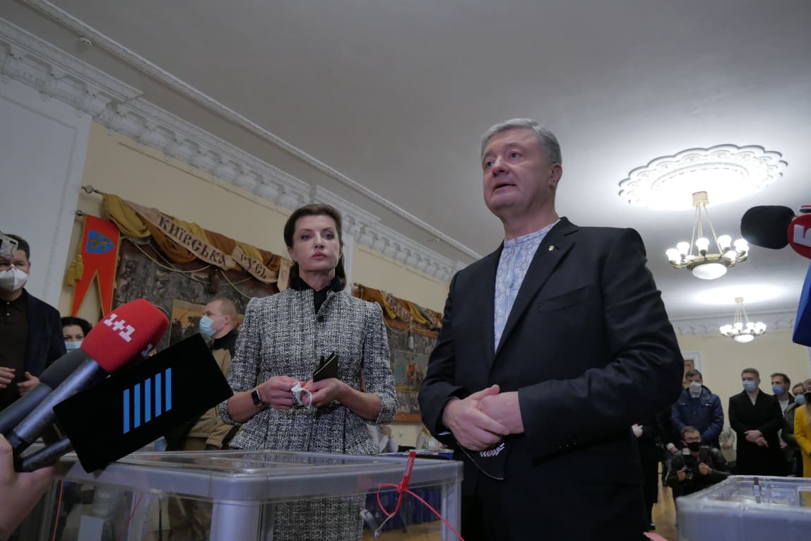 П’ятий президент України Петро Порошенко взяв участь у голосуванні на місцевих виборах у Будинку офіцерів у центрі Києва.