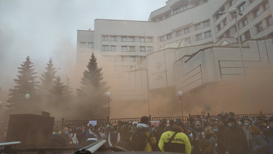 Під Конституційним судом проходить акція протесту проти рішення суддів про неконституційність ключових антикорупційних норм.