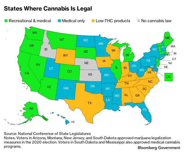 На выборах в США, 3 листопада, легалізацію канабісу підтримали ще в п'яти штатах. В 33 штатах вона вже була дозволена в медичних або розважальних цілях.