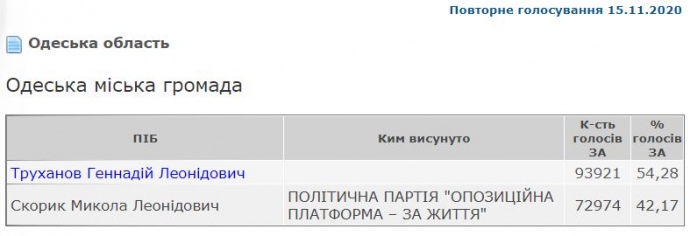 Деталі: Під час повторного голосування 15 листопада Труханов здобув 54,28% голосів виборців, а його опонент від ОПЗЖ Скорик – 42,17%.