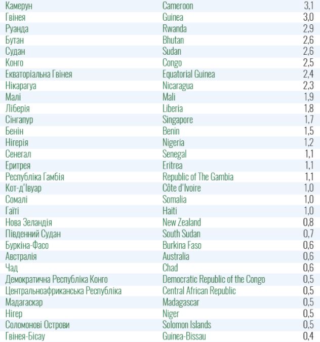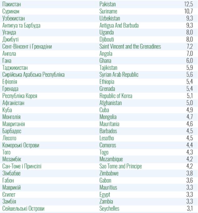 Також "червоні" - Грузія, Чехія, Хорватія, Болгарія, Чорногорія, США, тощо.