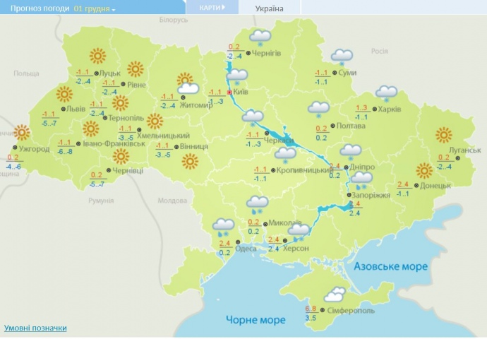 1 грудня на Прикарпатті до -9°. В Карпатах вночі 30 листопада 4-9° морозу, 1 грудня 7-12°, вдень 1-6° морозу.