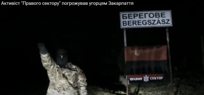 Деталі: Очевидно, йдеться про відео, яке було завантажено на YouTube, де невідомий у чорній масці на фоні начебто вказівника міста Берегове та прапора "Правого сектора", погрожує угорцям, які мають подвійне громадянство.