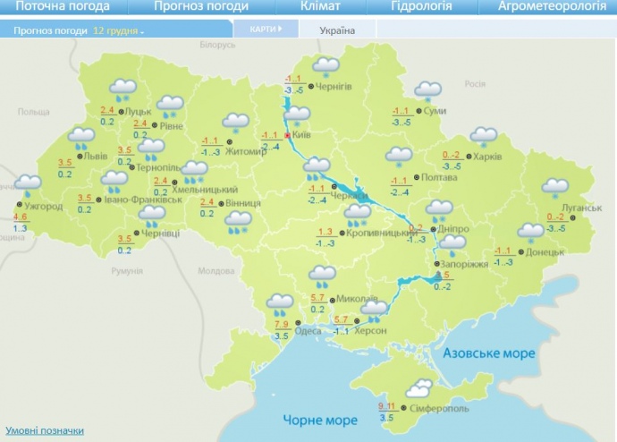 Протягом дня стовпчики термометрів коливатимуться в межах нуля градусів, на Сході буде до 2 морозу, на Заході та Півдні +3+8 градусів.