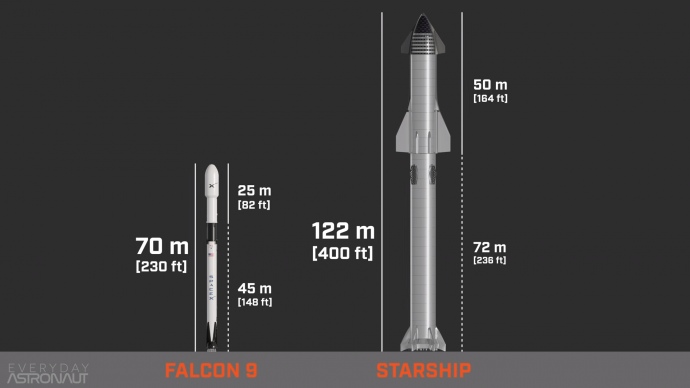 Видання Everyday Astronaut публікує порівняння Starship з Falcon 9, яка на цьому тижні виконала 100-й успішний політ.