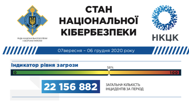 У період з 7 вересня по 6 грудня 2020 року в Україні зафіксували більше 22 мільйонів кіберінцидентів.