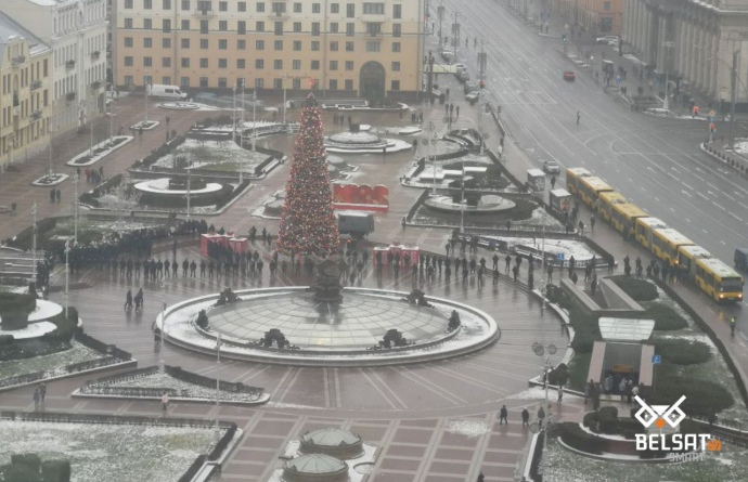 Люди прийшли з національними прапорами. Проспект Незалежності був перекритий, тому вони почали проводити акцію на площі, водили хоровод навколо ялинки і кричали "Йди!", "Живе Білорусь!"